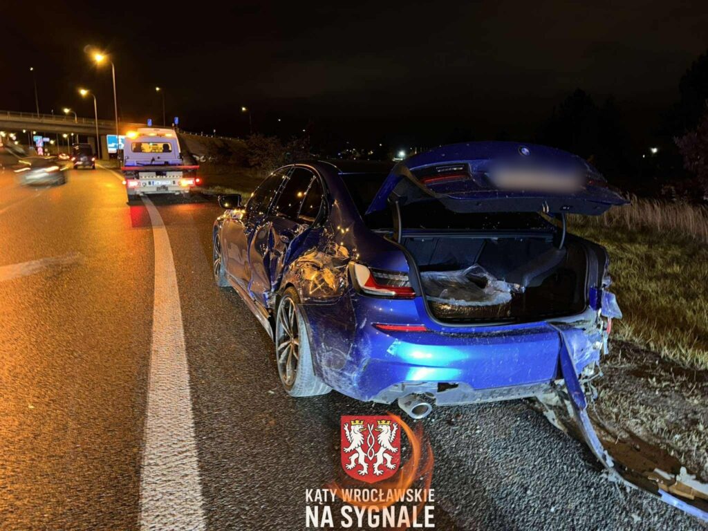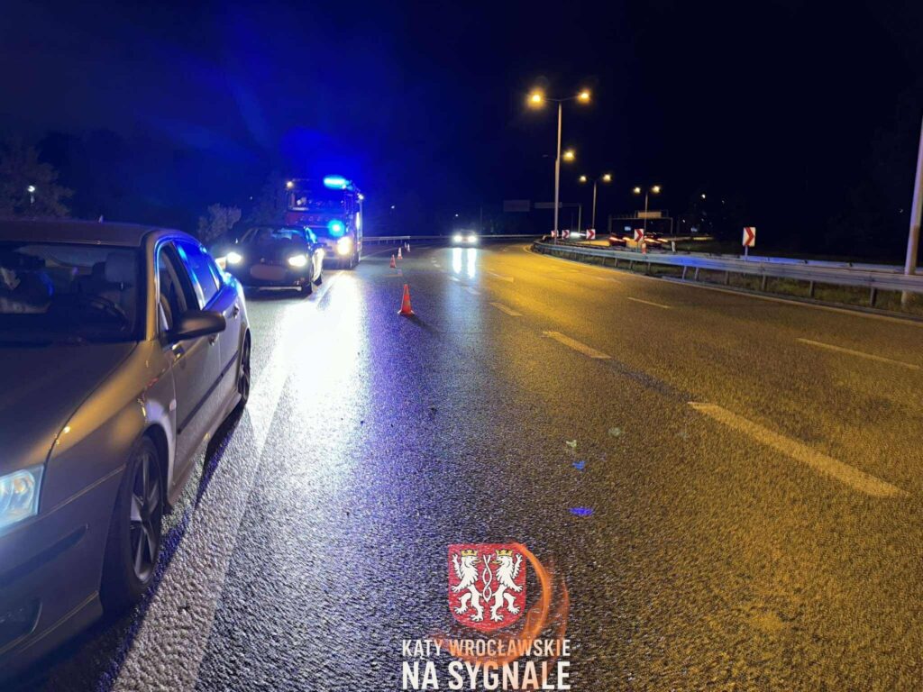 Zdarzenie drogowe z udziałem dwóch pojazdów, dostawczego Fiata oraz osobowego BMW. Kierujący Fiatem na łuku drogi wpadł w poślizg i uderzył w BMW, które następnie wpadło w bariery. Na miejscu pracuje zastęp Straży Pożarnej. Trwa oczekiwanie na przyjazd patrolu Policji z Wydziału Ruchu Drogowego.