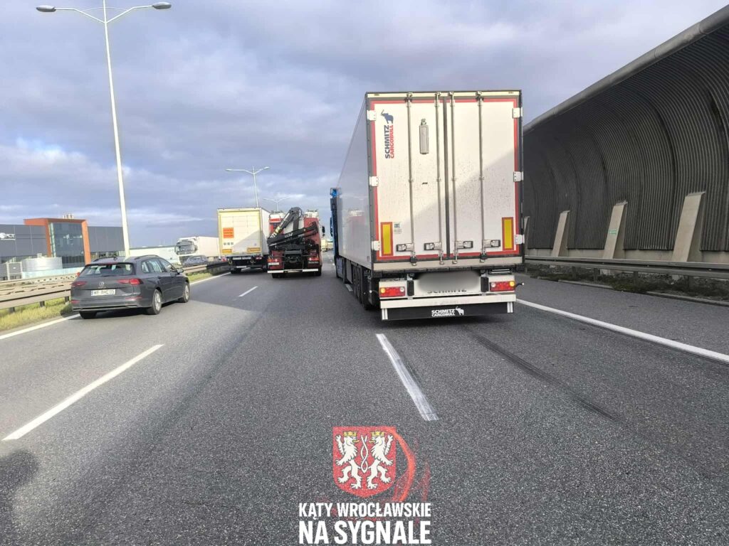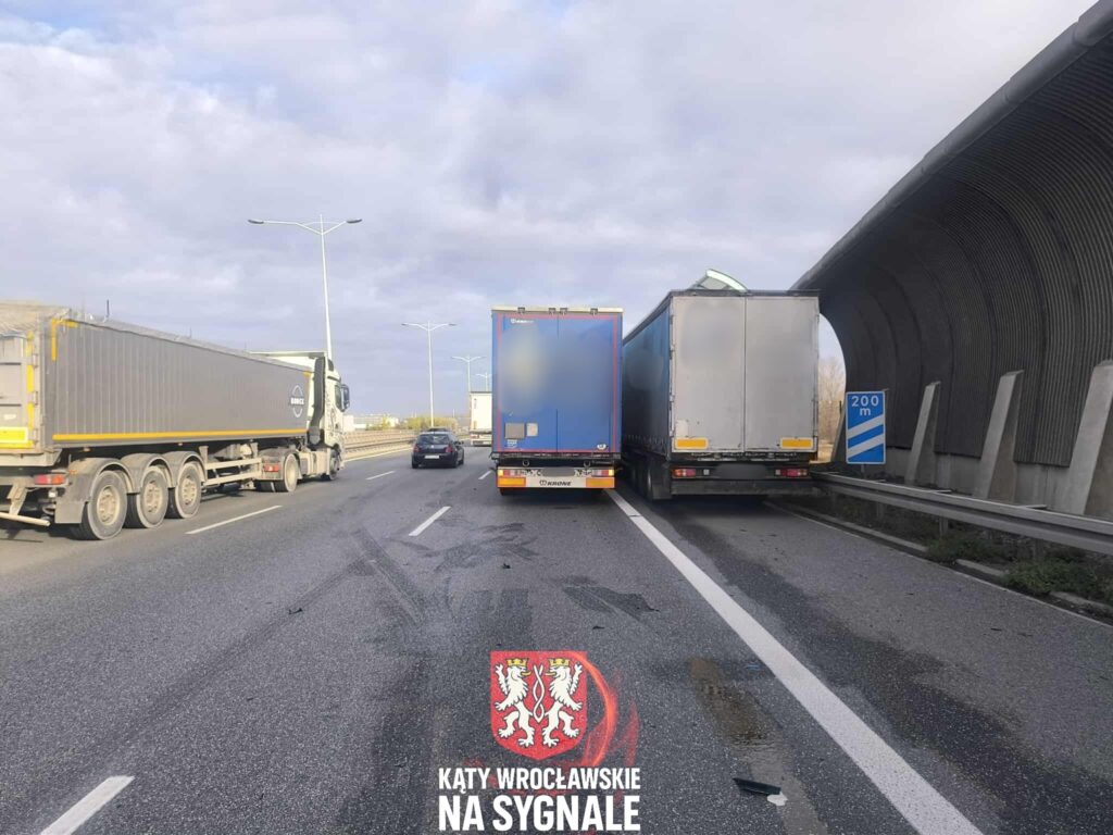 We wtorkowy poranek na Autostradowej Obwodnicy Wrocławia doszło do zdarzenia drogowego z udziałem dwóch samochodów ciężarowych. Do kolizji doszło na 12. kilometrze trasy, tuż przed zjazdem na Lotnisko na pasie prowadzącym w kierunku Warszawy.