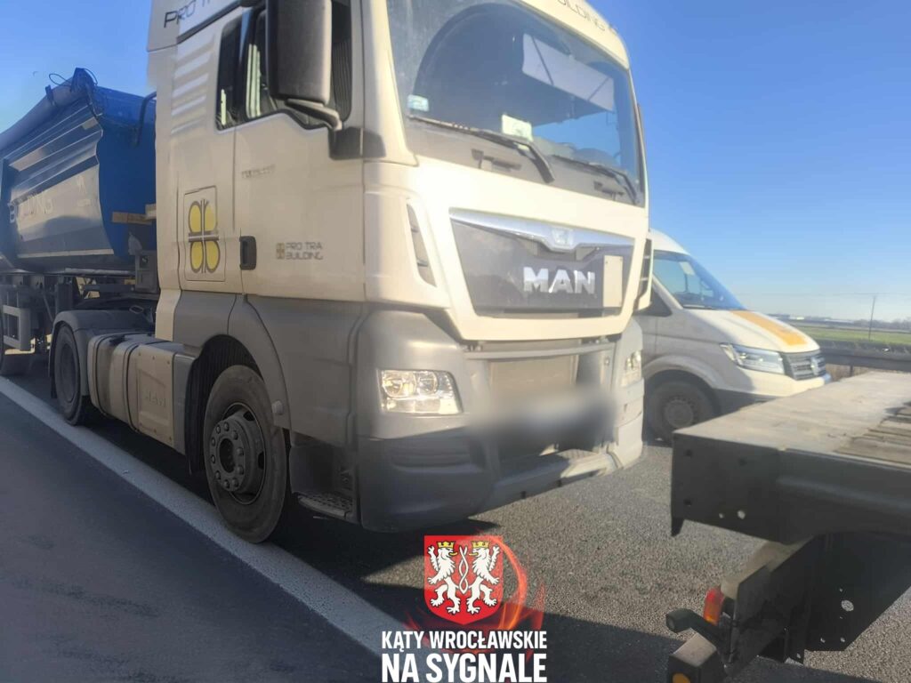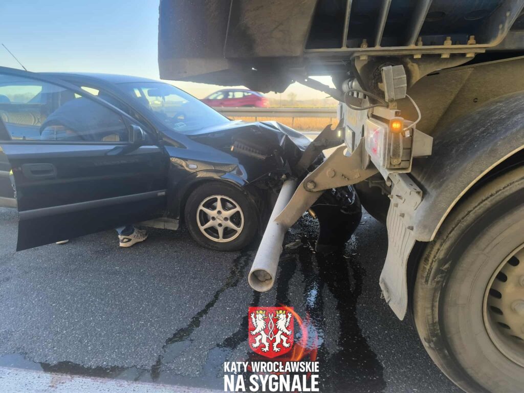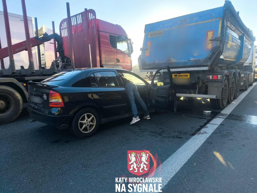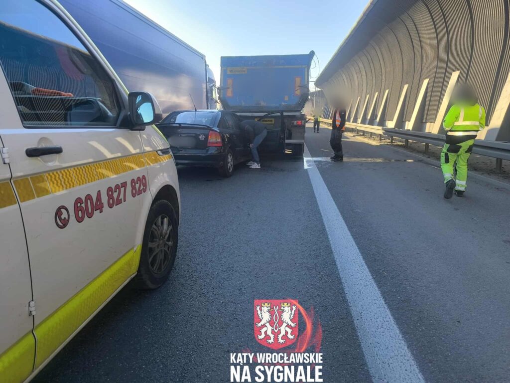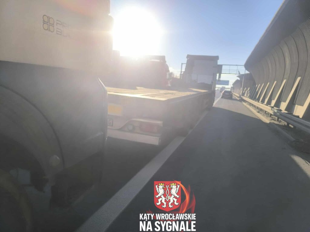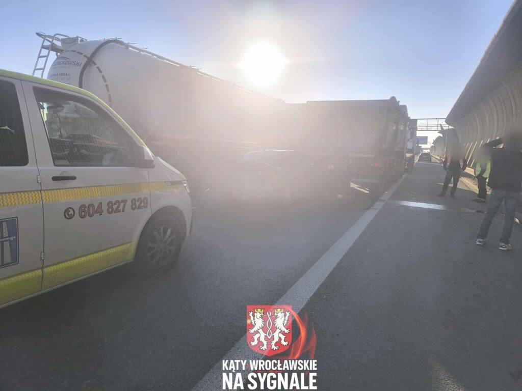 W środowy poranek na Autostradowej Obwodnicy Wrocławia doszło do poważnego zdarzenia drogowego z udziałem trzech pojazdów. Na 8. kilometrze AOW, w kierunku Kudowy-Zdroju, tuż przed zjazdem na Autostradę A4, zderzyły się dwa samochody ciężarowe oraz samochód osobowy.