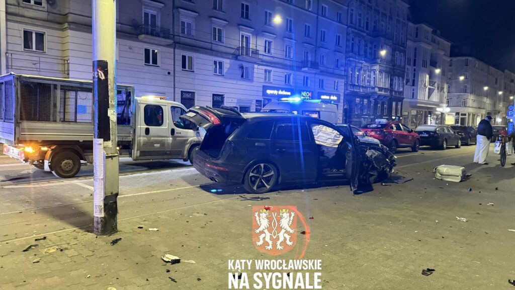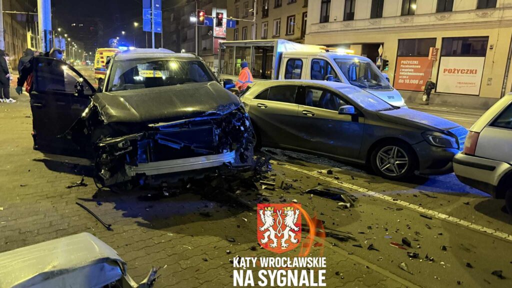 W niedzielny poranek na ul. Piłsudskiego we Wrocławiu doszło do groźnie wyglądającego zdarzenia drogowego z udziałem czterech samochodów osobowych. Jak wynika ze wstępnych ustaleń, do kolizji doszło pomiędzy kierującąmy Audi, a kierowcą Dacii świadczącym przewozy w ramach FreeNow.