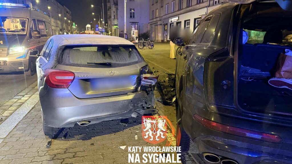 Po zderzeniu Audi straciło stabilność i uderzyło w dwa prawidłowo zaparkowane pojazdy – Mercedesa oraz Volkswagena. Na miejsce natychmiast skierowano Zespół Ratownictwa Medycznego oraz patrol Policji z Wydziału Ruchu Drogowego.