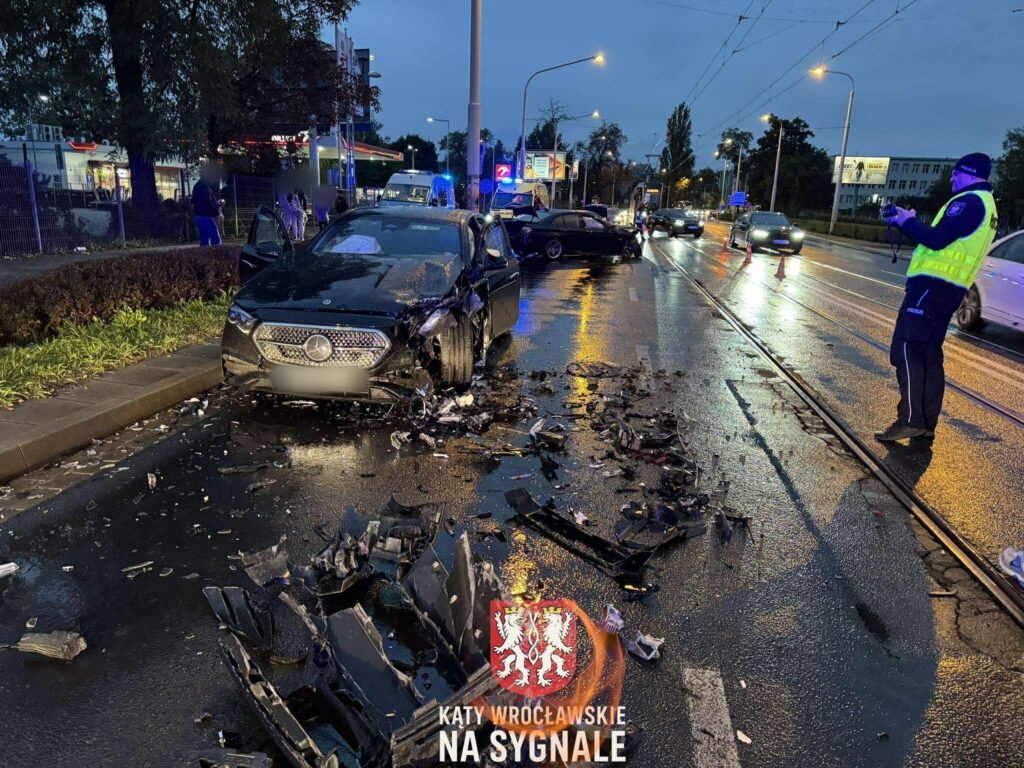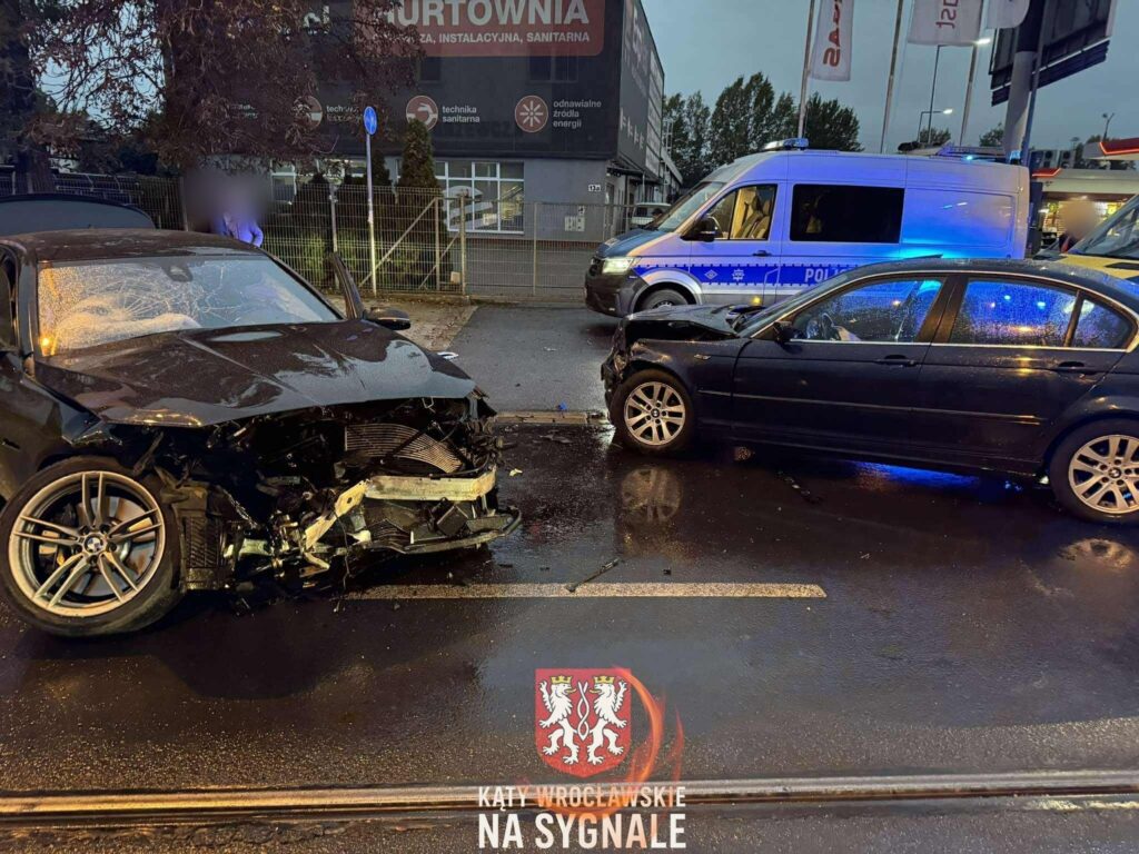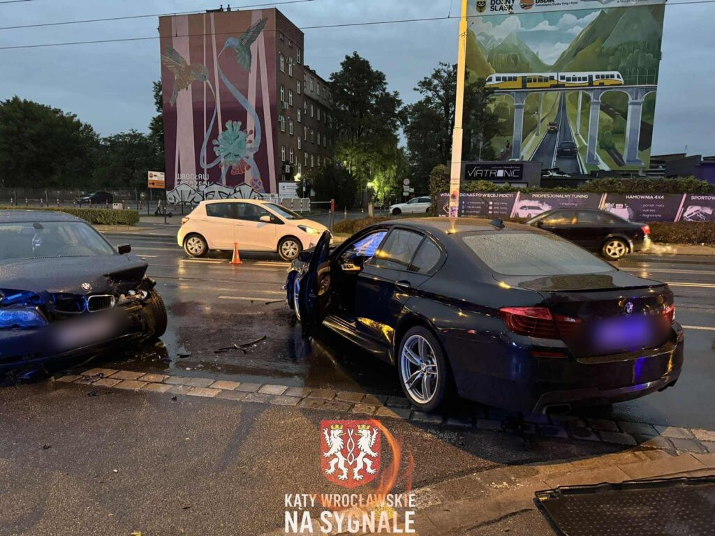 W sobotę, 04 października 2025 roku, około godziny 19:30, na ulicy Krakowskiej we Wrocławiu doszło do wypadku z udziałem czterech samochodów osobowych. Kierujący BMW serii 5 wpadł w poślizg, uderzył w tył Skody, a następnie zderzył się czołowo z Mercedesem oraz BMW serii 3.