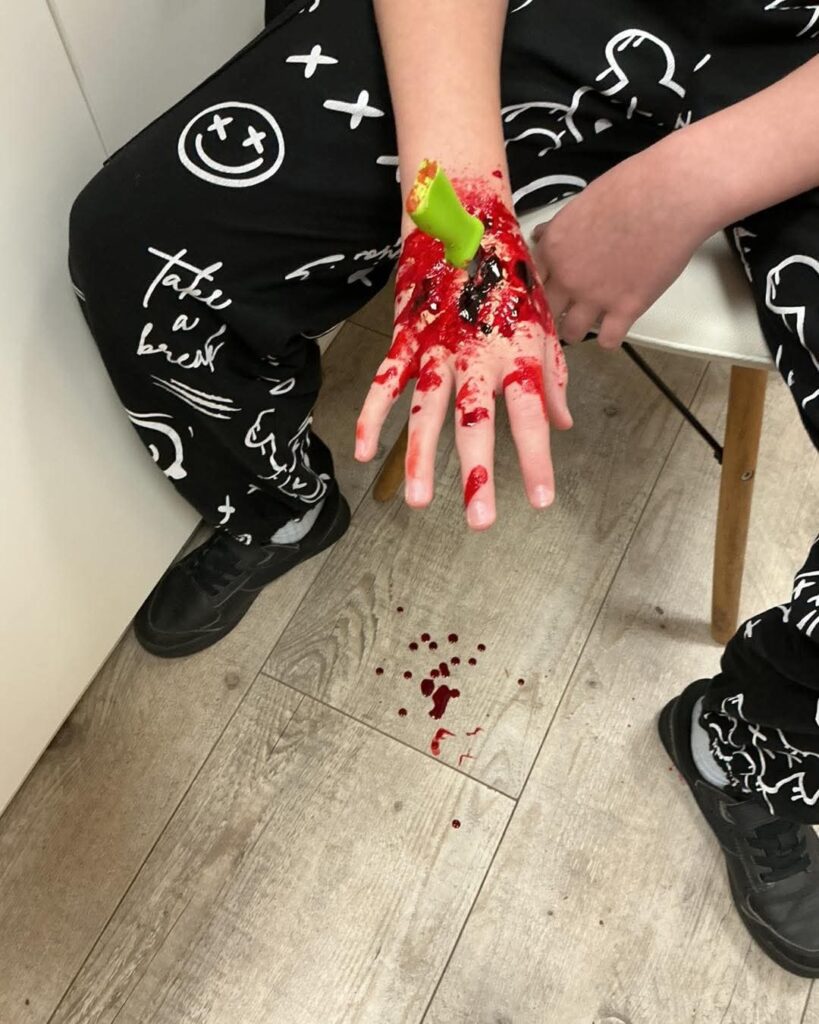 Szkolenie z podstaw pierwszej pomocy podczas urodzin? Czemu nie! Był tort, mnóstwo śmiechu, zabawy i… odrobina KREW(i) oczywiście tylko w celach edukacyjnych 😉🩸