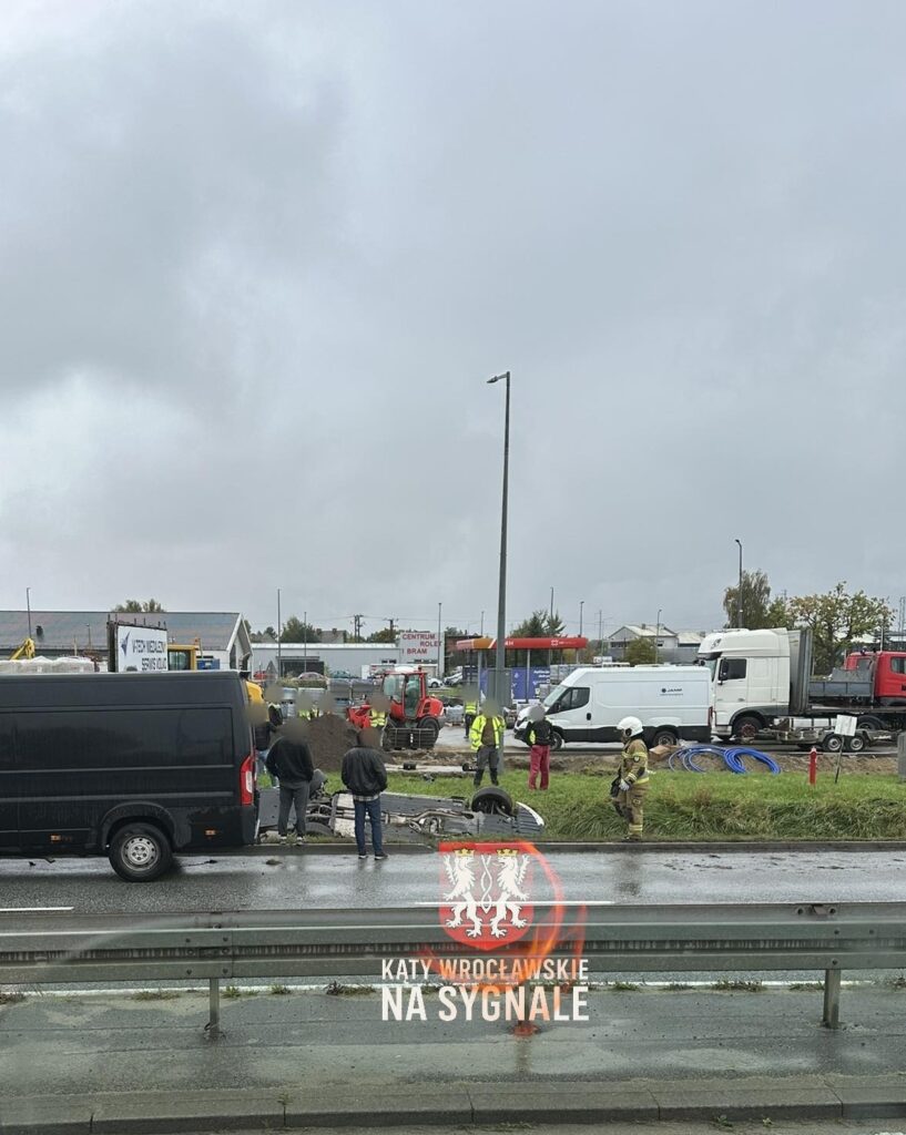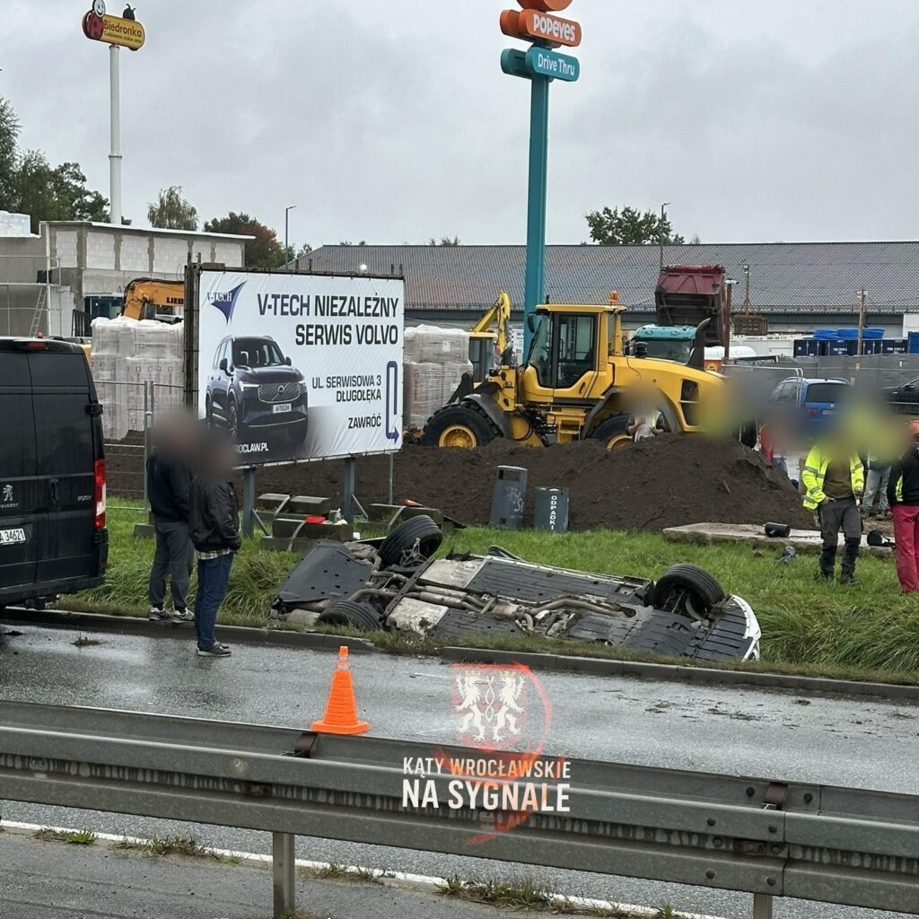 W czwartek, tuż po godzinie 12:32, służby ratunkowe zostały wezwane do zdarzenia drogowego w Długołęce przy ul. Wrocławskiej. Z nieustalonych dotąd przyczyn, pojazd osobowy zjechał z jezdni i dachował.