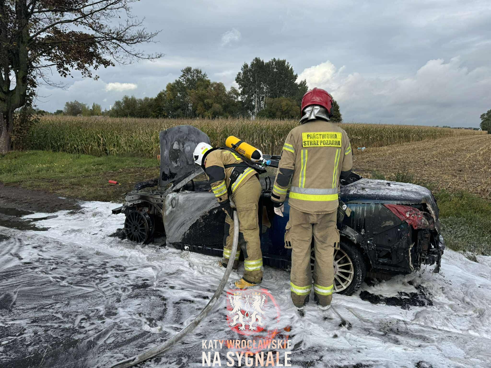 Pożar samochodu w Turowie pojazd całkowicie spalony.