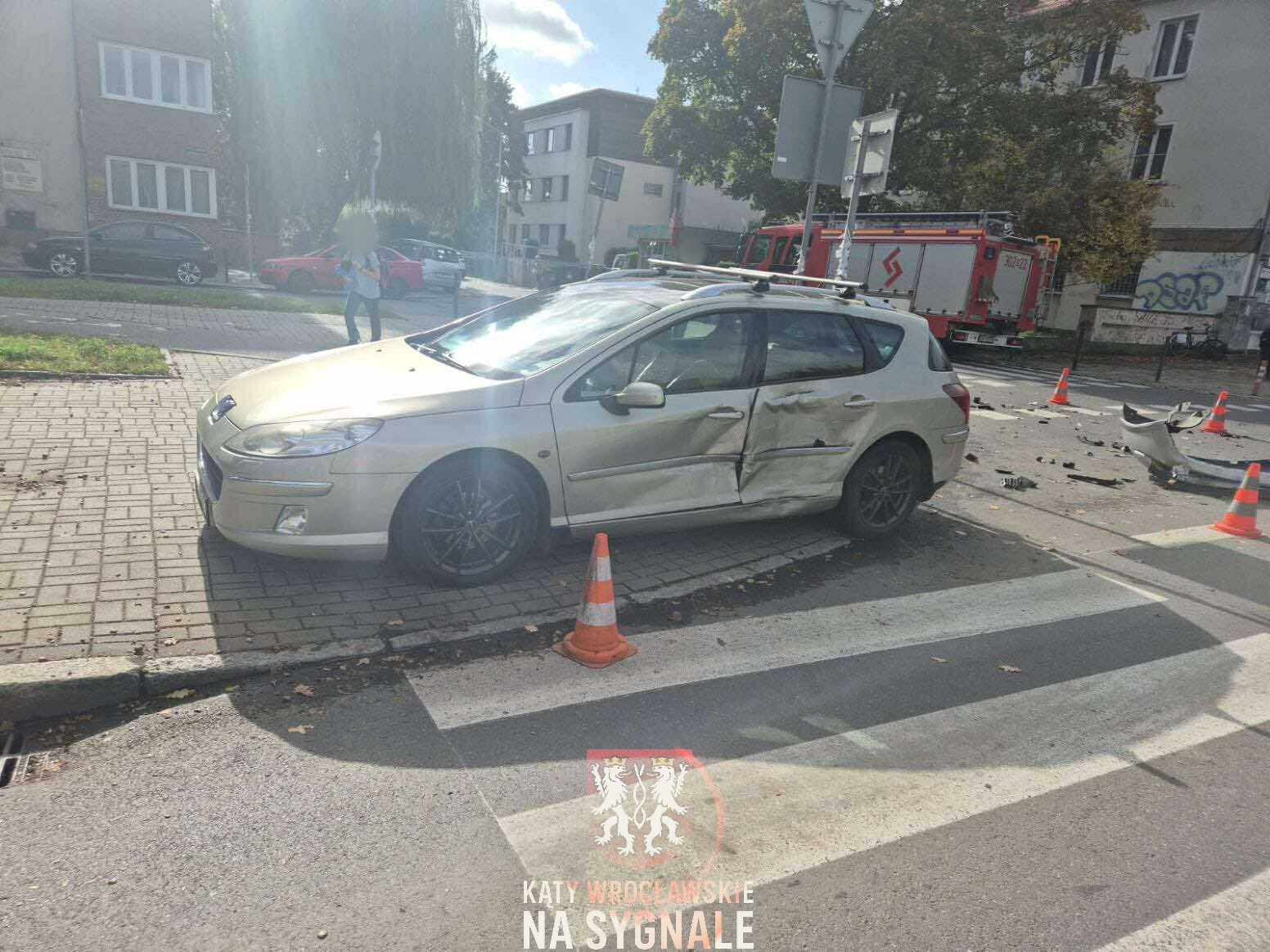 Zderzenie dwóch samochodów osobowych we Wrocławiu.
